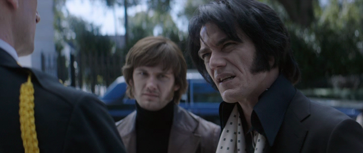 Я не буду рассуждать о правдивости рассказанной истории, как и впрочем, о точности показанных персонажей, так как что Пресли, что Никсон для меня темный лес, но зато можно с уверенностью утверждать, что актеры, сыгравшие их справились со своими задачами на отлично. Майкл Шеннон показал крутого Элвиса Пресли. Не знаю, каким был Элвис в реальной жизни, но экранный образ Пресли, отлично исполненный Майклом Шенном получился действительно крутым, харизматичным и немного странным. У Кевина Спейси задача была полегче, так как он уже не раз заседал в Овальном кабинете и у него есть большой «президентский» опыт. После Фрэнка Андервуда, сыграть Ричарда Никсона для такого уровня актера не составит особого труда, что он блестяще и продемонстрировал.