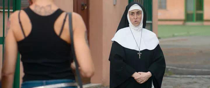 Паола Кортеллези всё также просто великолепна в роли Моники – бой-бабы (но с ранимой душой) из пригорода. Она попадает в тюрьму, но благодаря нужным связям получает возможность отбояриться альтернативным наказанием. И я сразу вспоминаю другое недавно виденное мною итальянское кино. Да. Ей придется жить и работать в церковном приюте. Помогать людям. А она ведь криклива и суеверна.