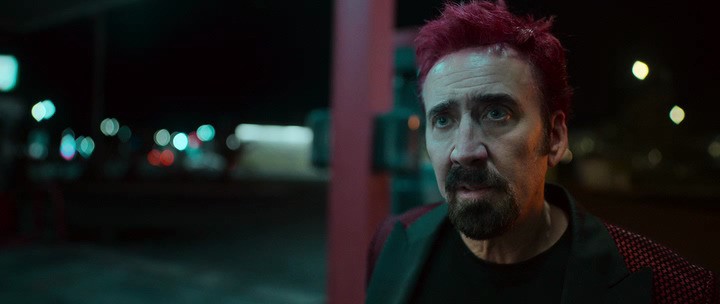Впрочем, будет большой ошибкой сказать, что у «Схватки» совсем нет достоинств – это не так, это же кино с Николасом Кейджем! Собственно, ради него и его партнера по машине Юэля Киннамана все и было снято. Фильм представляет собой непрекращающийся актерский бенефис Кейджа в какой-то совершенно безумной роли мужика с пушкой и поехавшей «кукухой», вызывающего ужас своей веселой неадекватностью. Несмотря на то, что персонаж не слишком симпатичен, нельзя отрицать, что роль у Кейджа непростая, а сам актер блестяще справляется с ней, показывая, что находится в очень неплохой форме. У его странноватого персонажа есть даже небольшое развитие, впрочем, в этом чуть театрализованном образе страшного клоуна можно обойтись и без оного – впечатляет и так.